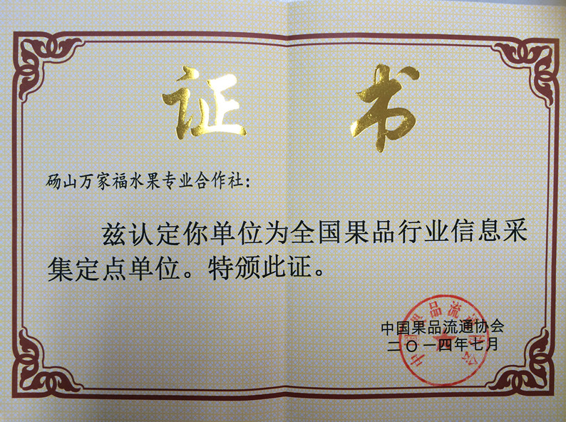 全国果品行业信息采集定点单位获证时间:2014-07-01 |